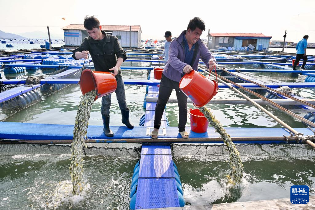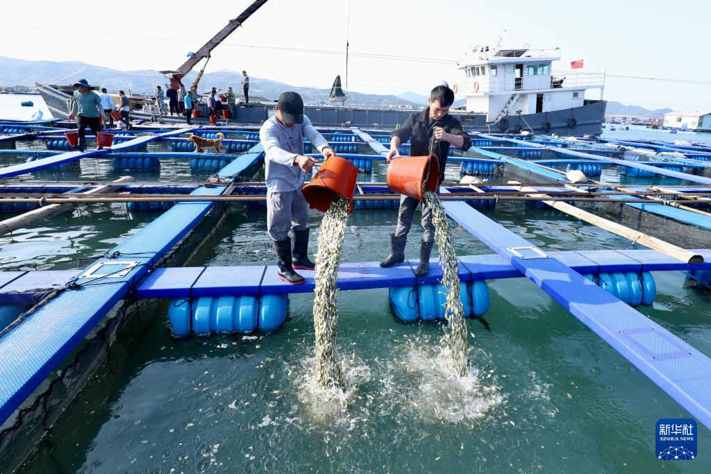 随着气温逐渐回暖,福建省宁德市海上大黄鱼养殖区迎来春季投苗黄金期。连日来,养殖户们抢抓海水温度稳定在12℃左右的窗口期,陆续投放大黄鱼鱼苗,预计今年全市将投放约25亿尾本土培育的大黄鱼鱼苗,海上“春耕”正有序展开。