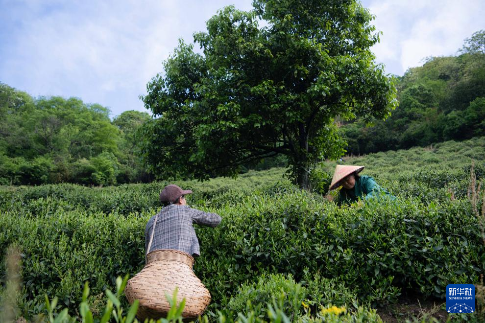 4月24日,在黄山市黄山区新明乡猴坑村,采茶工结束采摘后离开高山茶园。