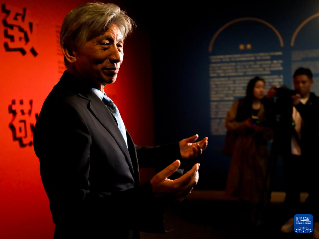 4月27日,中国美术家协会主席、中国当代画家范安迪为观众讲解展览作品。