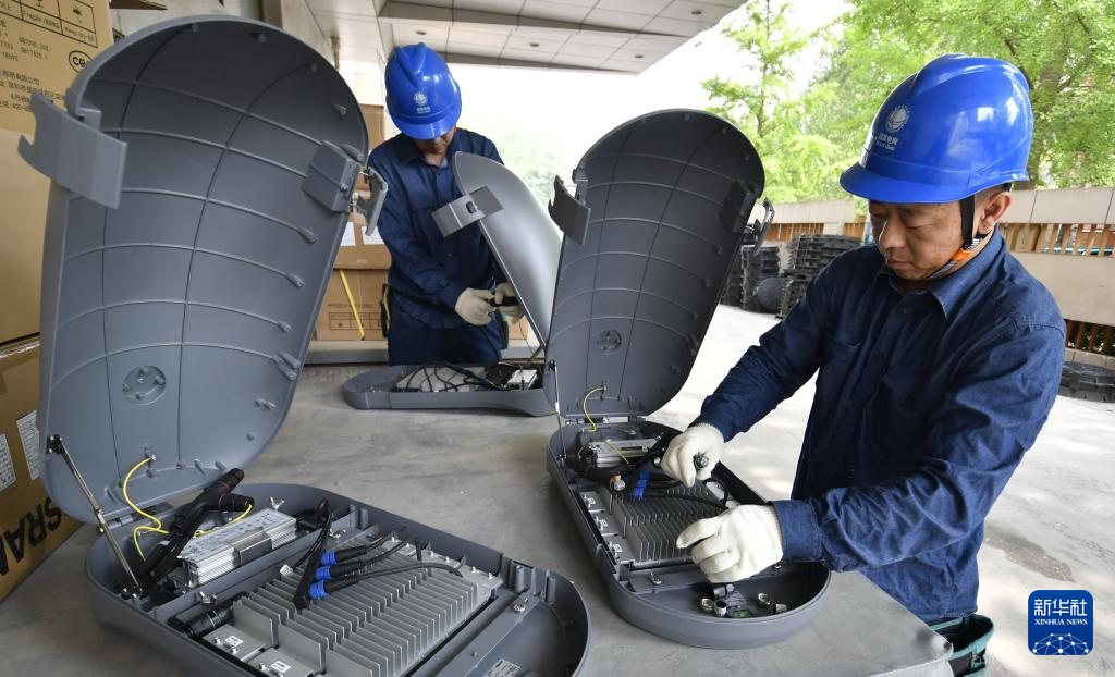 4月27日,北京市城市照明管理中心的技术人员在组装LED节能路灯。