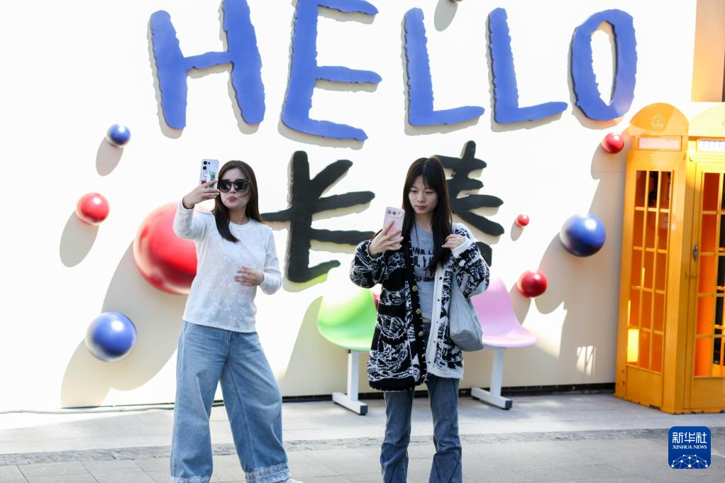4月29日,市民在吉林省长春市商埠地历史文化街区打卡拍照。