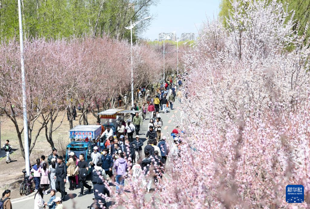 4月26日,市民在吉林省长春市伊通河畔拍照。