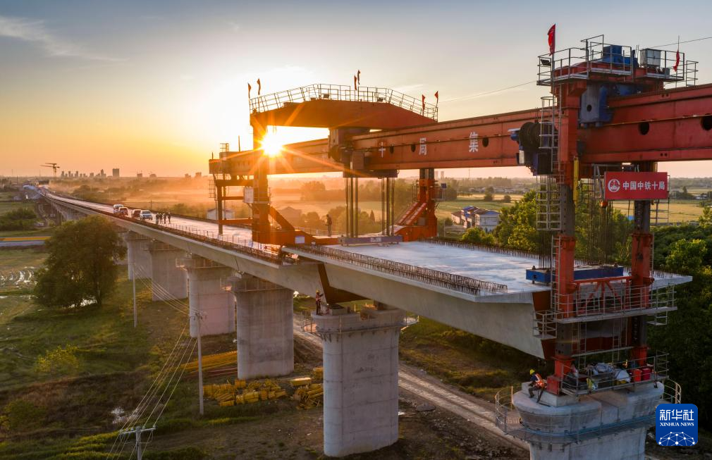 “五一”国际劳动节前,中铁十局合武高铁安徽段站前一标建设者利用有利天气条件抓紧施工,高标准高质量推进项目建设。合肥至武汉高速铁路是我国“八纵八横”高铁网沿江通道的重要组成部分,设计时速350公里。线路建成后,合肥至武汉间将形成新的高铁大通道,进一步优化长江经济带铁路网布局。