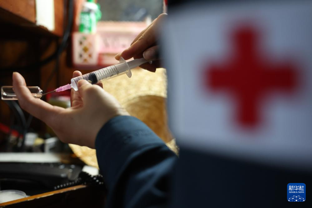 海警川山舰卫生员单荣荣在渔船上准备为患病渔民注射药物(4月26日摄)。新华社记者 陈斌 摄pagebreak