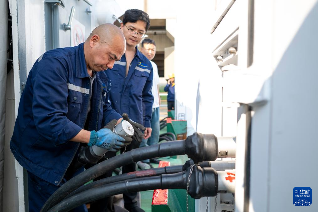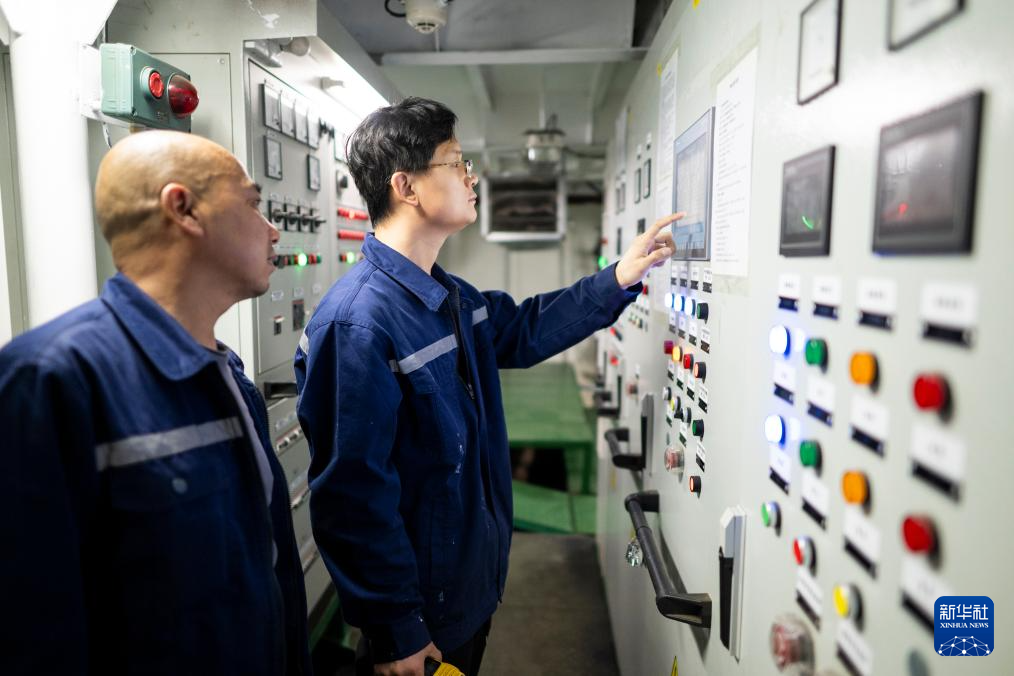 4月30日,“华航新能2”轮船员在操作功率管理系统。