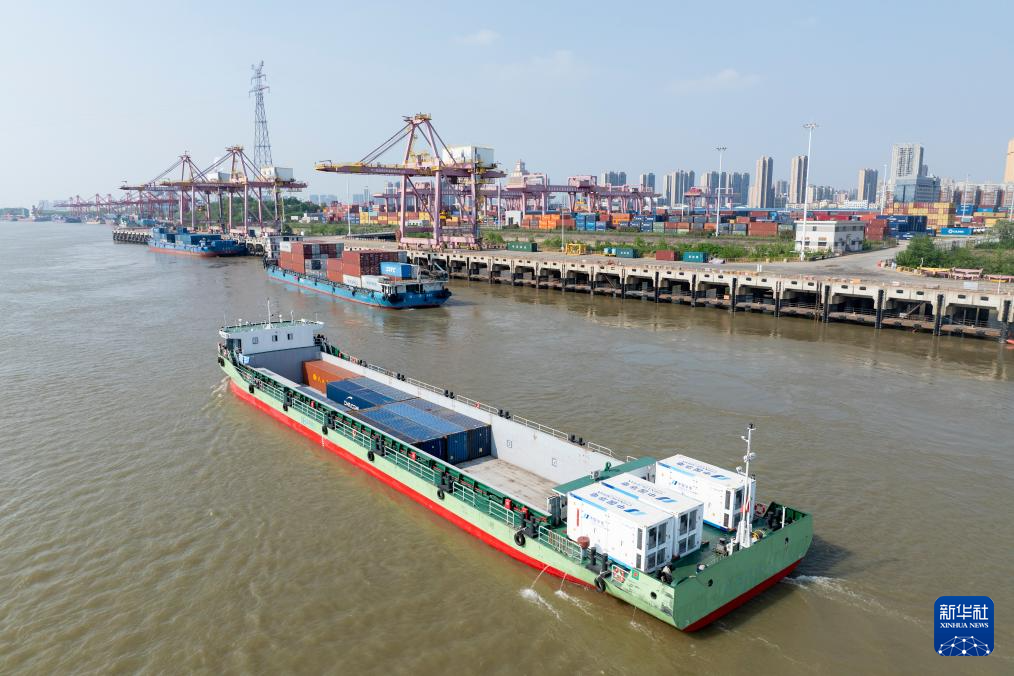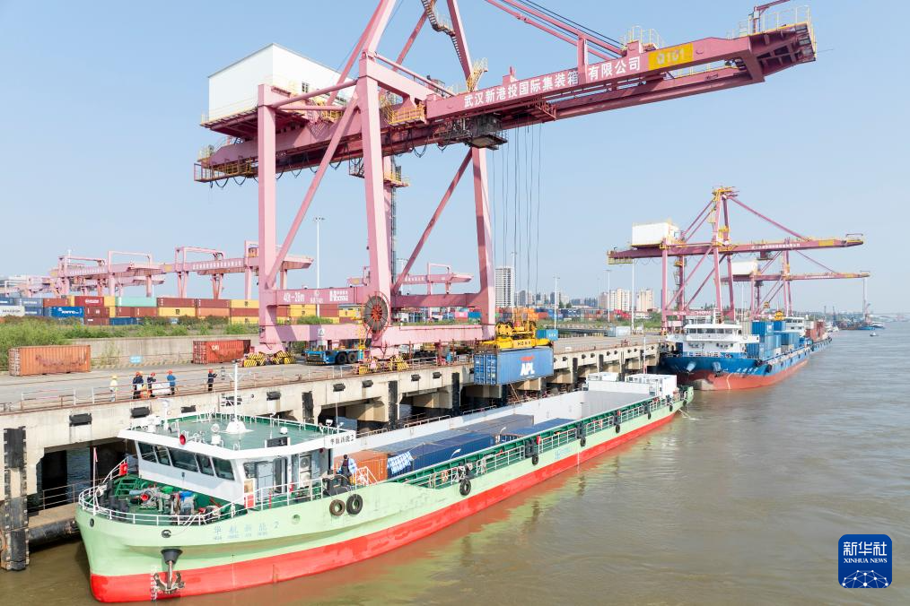 4月30日,“华航新能2”轮在武汉阳逻港停泊(无人机照片)。