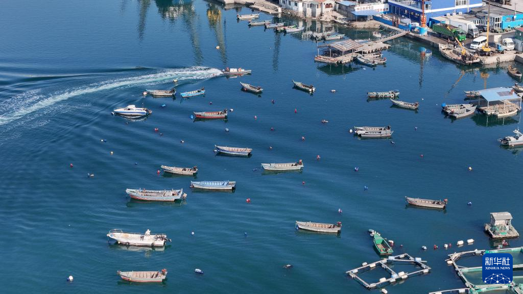 4月30日,在山东省烟台市芝罘岛一处渔港,渔船陆续返港准备休渔(无人机照片)。