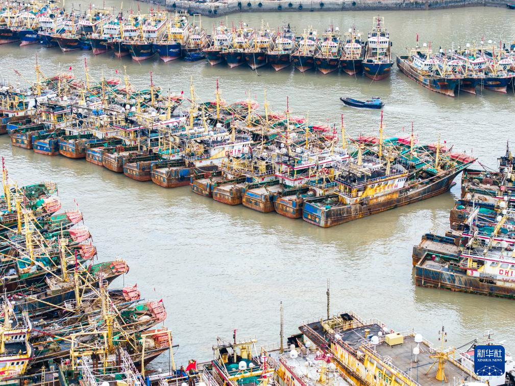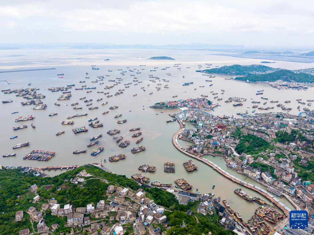 4月30日,在浙江省温岭市石塘镇箬山渔港内,大批渔船归港进入伏季休渔期(无人机照片)。