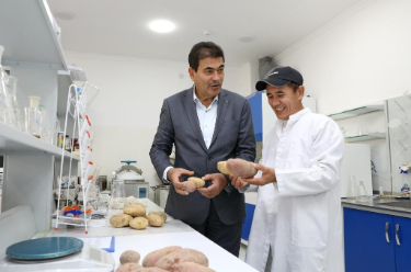 25日,在乌兹别克斯坦科学院遗传学与植物实验生物学研究所的试验田里,“中乌马铃薯高产技术联合研发基地”进行项目验收,由青岛农业大学专业团队开展的秋作马铃薯栽培田间试验迎来丰收。