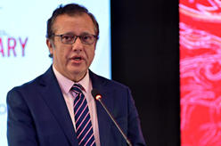 11月25日,在巴基斯坦南部城市卡拉奇,巴基斯坦国家银行(央行)执行董事穆罕默德·马利克在巴基斯坦人民币清算行(中国工商银行卡拉奇分行)举办的“人民币国际化在巴十周年”活动上致辞。
