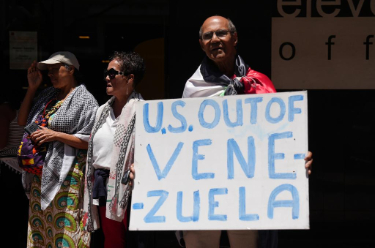 1月16日,人们在南非开普敦参加集会,抗议美国对委内瑞拉的军事行动。