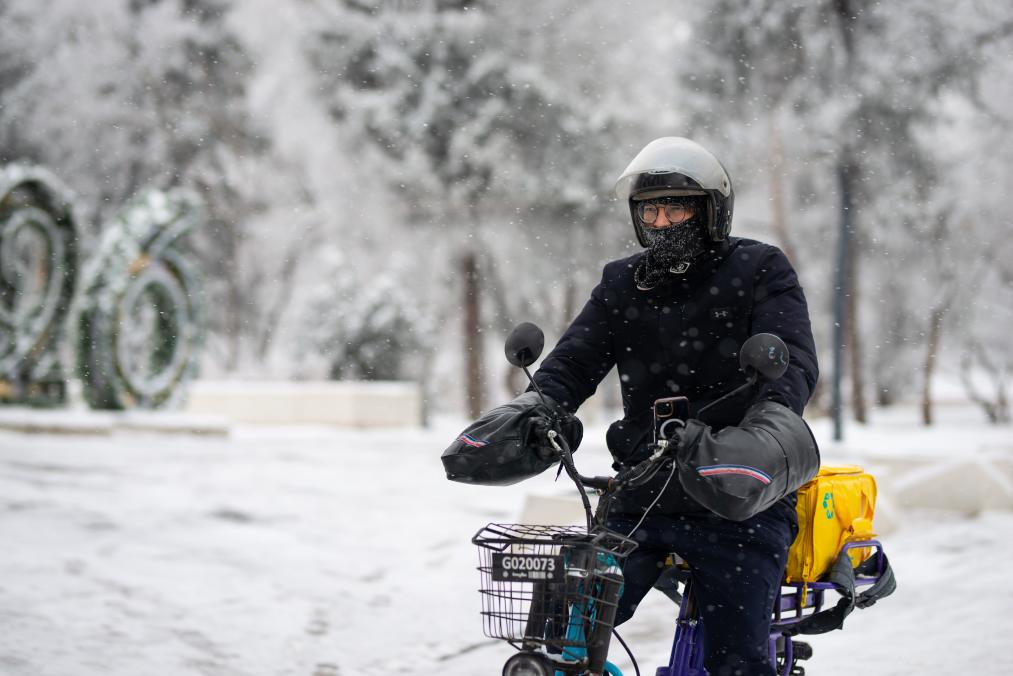 哈萨克斯坦第一大城市阿拉木图16日迎来持续性降雪天气。