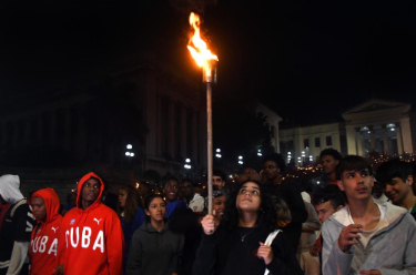 古巴民众27日晚在首都哈瓦那举行传统火把游行,谴责美国霸权主义和对外侵略行径,强调反帝国主义立场。