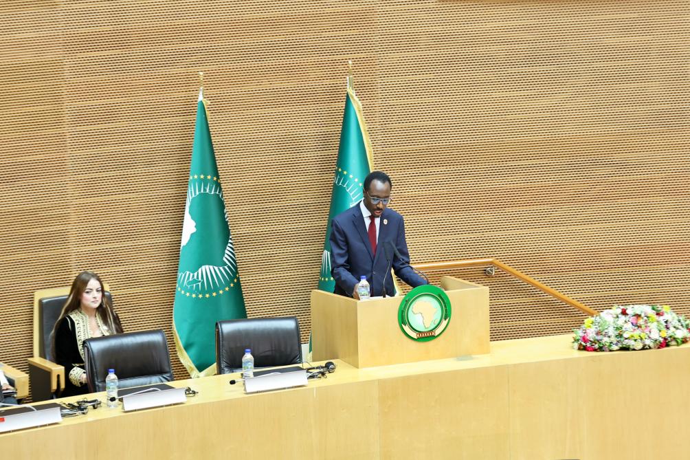 2月11日,在位于埃塞俄比亚首都亚的斯亚贝巴的非洲联盟(非盟)总部,埃塞俄比亚外交部长格迪翁在非盟执行理事会第48届常务会议上发言。