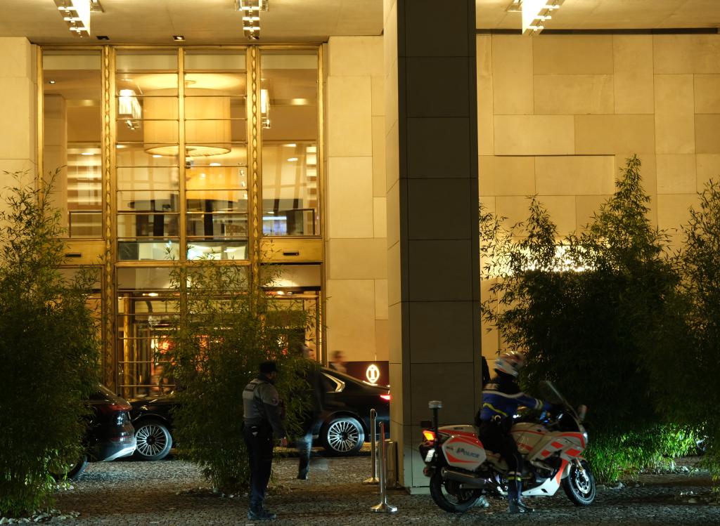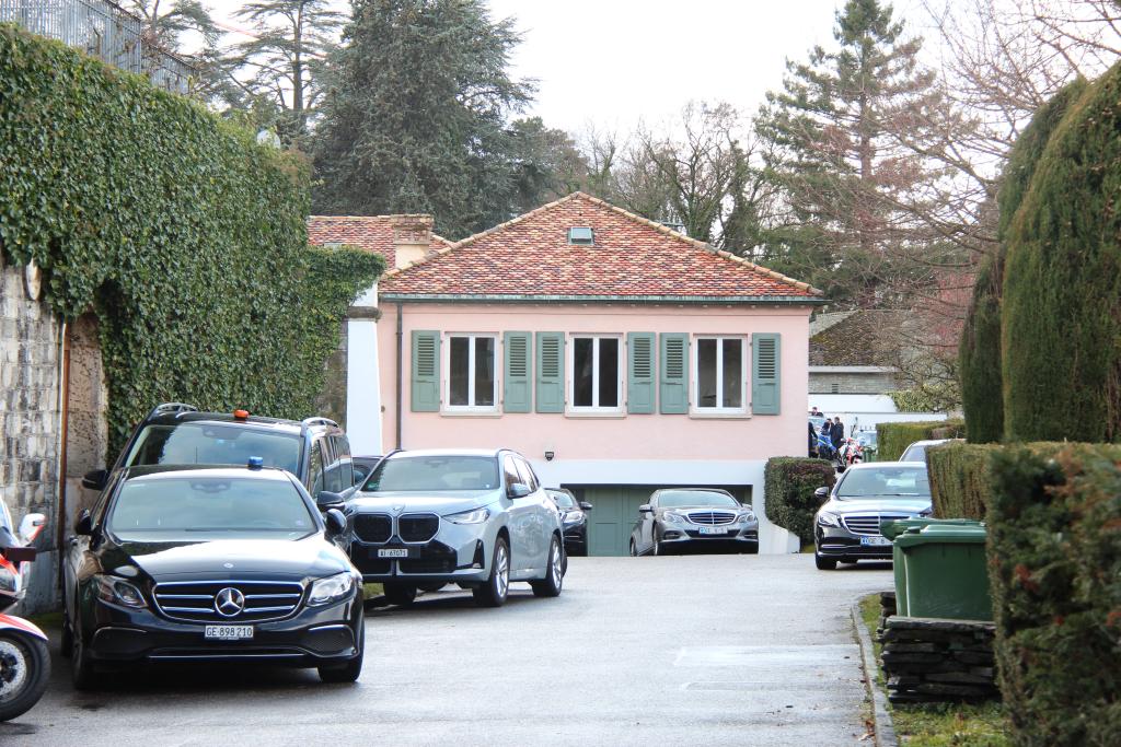2月17日晚,在瑞士日内瓦,参与俄美乌三方谈判的人员在结束首日会谈后乘车离开会场。