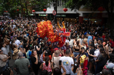 2月21日,美国纽约法拉盛举行游行活动,庆祝中国农历马年春节。