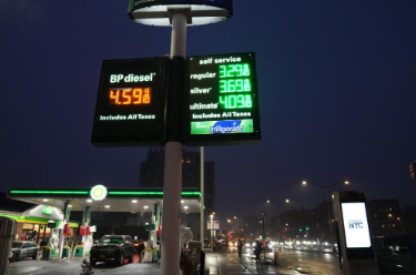 这是3月5日在美国纽约一座加油站拍摄的油价显示屏。