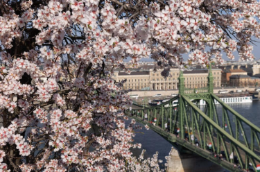 近日,匈牙利首都布达佩斯格列尔特山上杏花盛开,吸引众多游人前来观赏。