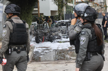 3月15日,安全人员和应急人员在以色列中部城市特拉维夫的导弹袭击现场工作。