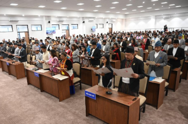 3月26日,在尼泊尔首都加德满都,尼泊尔新一届联邦议会众议院议员宣誓就职。