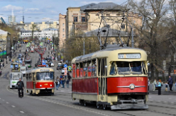 当日,俄罗斯首都莫斯科举行有轨电车游行活动,纪念有轨电车在莫斯科运行127周年。
