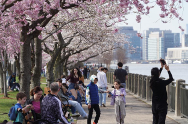 美国纽约:樱花树下享春光。