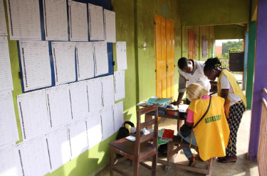 4月12日,工作人员在贝宁科托努的一处投票站统计选票。