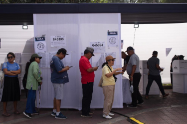4月12日,在秘鲁首都利马,选民排队参加投票。