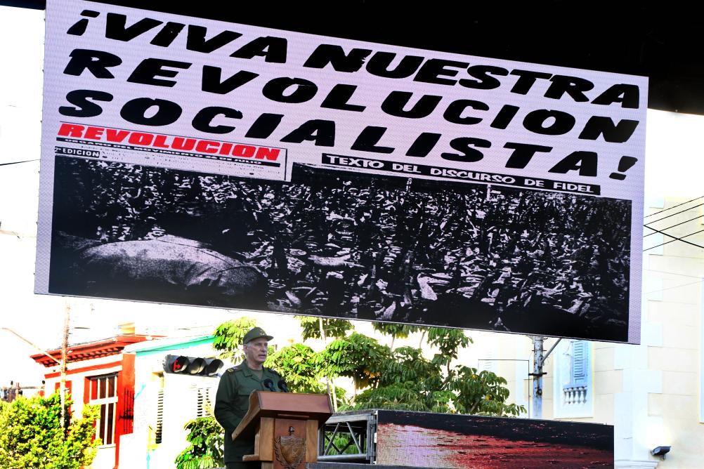 大批古巴民众4月16日聚集在首都哈瓦那贝达多区23街与12街的交叉路口,纪念古巴革命领袖菲德尔·卡斯特罗宣布开始实行社会主义革命65周年。古共中央第一书记、古巴国家主席迪亚斯-卡内尔等出席活动。