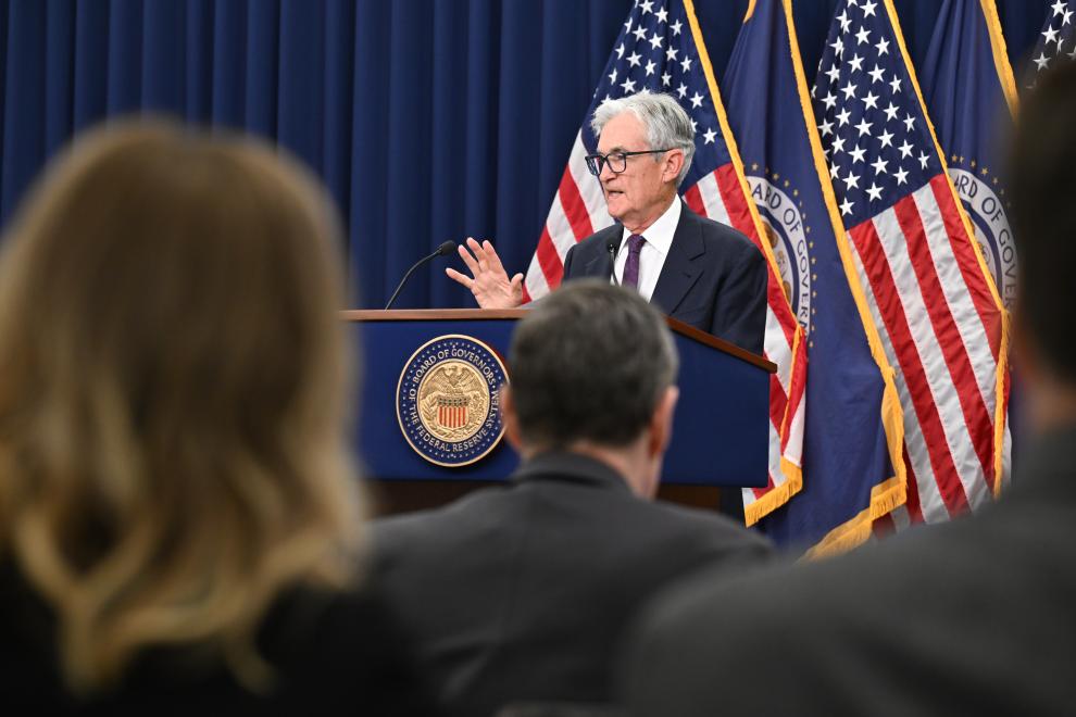 4月27日,交易员在美国纽约证券交易所交易大厅内交谈。