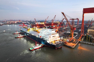11月20日,江苏扬子鑫福造船有限公司建造的17.5万立方米LNG运输船“鑫福124”轮,在海事等部门全程协调保障下,于江苏泰州泰兴市顺利出江试航。