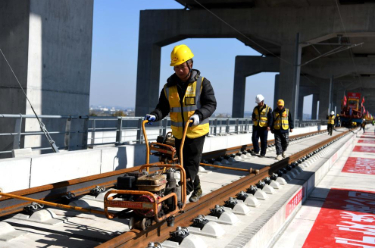 11月20日,在巢马城际铁路铺轨施工现场,中铁四局施工人员将首对500米长钢轨铺设在无砟轨道上,这标志着巢马城际铁路全线开始铺轨。巢马城际铁路是国家“八纵八横”高铁网沪汉蓉快速通道合肥至上海间的重要组成部分,设计时速350公里。