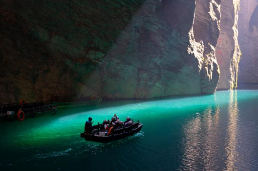 初冬时节,湖北省恩施土家族苗族自治州鹤峰县屏山峡谷迎来迷人景观。正午时分,阳光穿过幽深峡谷,将蜿蜒的“一线天”照亮,舟行水上若悬浮于空中,形成了独特的“舟浮空中”奇观。