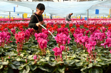 冬日农闲时节,在甘肃省定西市安定区凤翔镇北廿铺村,牛皮鼓手工制作艺人利用晴好天气赶制订单牛皮鼓,供应市场。