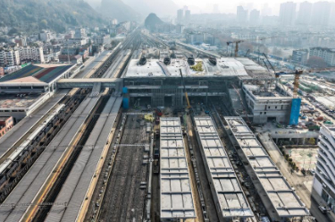 安顺至六盘水高速铁路六盘水站站房及站场改造工程在稳步推进中。日前,由中铁电气化局承建的六盘水站站房钢网架提升工程顺利完成,站房内部施工及相关配套设施正在建设中。