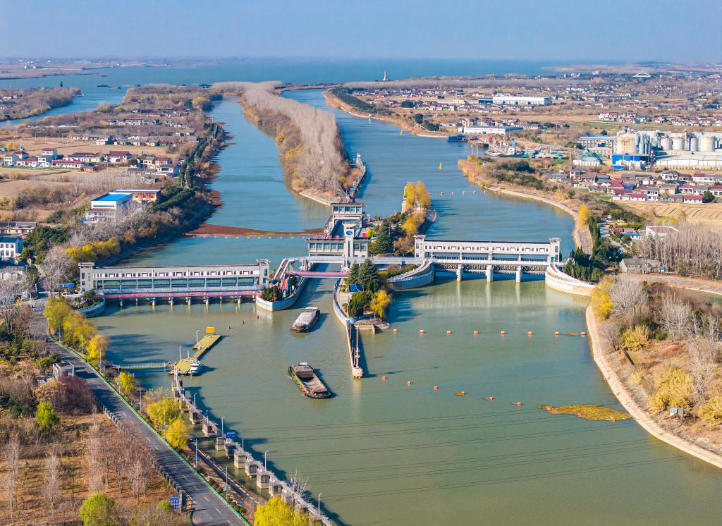 12月21日在江苏省扬州市江都区拍摄的南水北调东线一期工程运盐闸、邵仙套闸、邵仙闸洞(无人机照片)。
