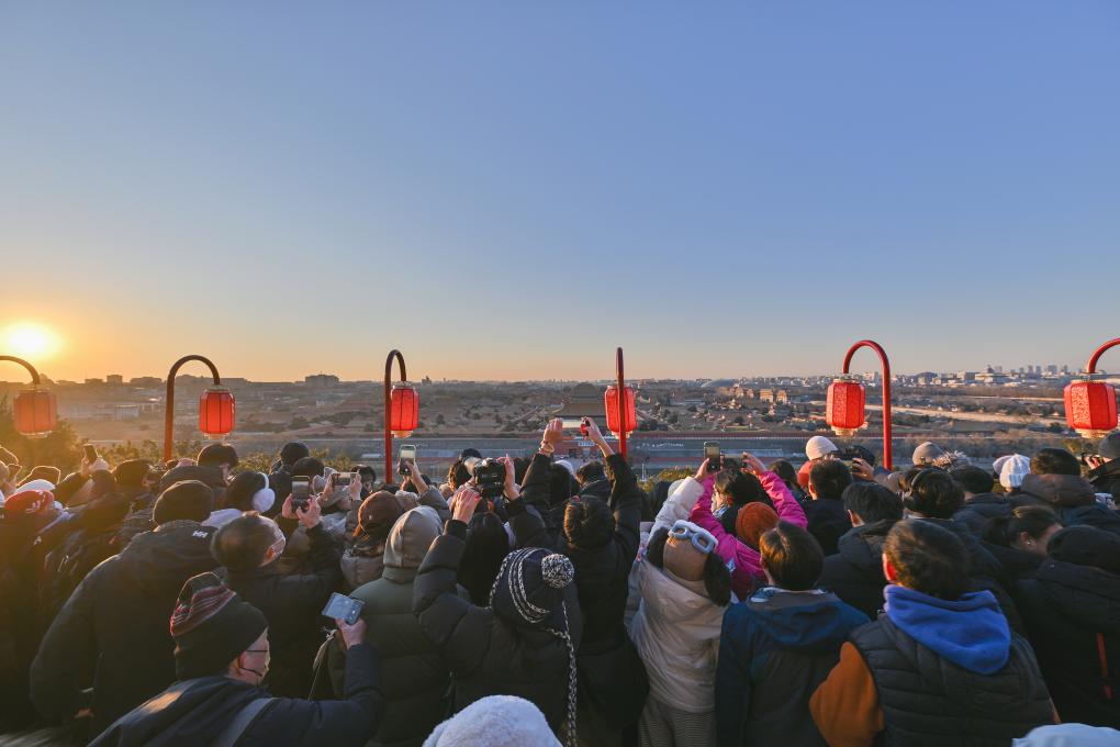 新年第一天,人们伴着朝阳迎接2026年的到来。