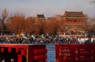1月10日,北京什刹海前海冰场正式营业,吸引众多游客到此休闲游玩。受气温影响,冰场目前开放的是前海区域。前海冰场运营面积为3.5万平方米,营业时间为8点至21点。