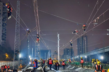 1月16日凌晨,沪宁合高铁跨京沪高铁立交特大桥201.5米预应力混凝土T构转体梁成功完成26.3度“空中转体”,跨越京沪高铁。