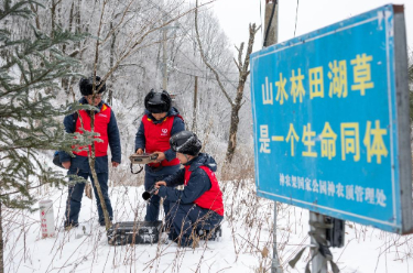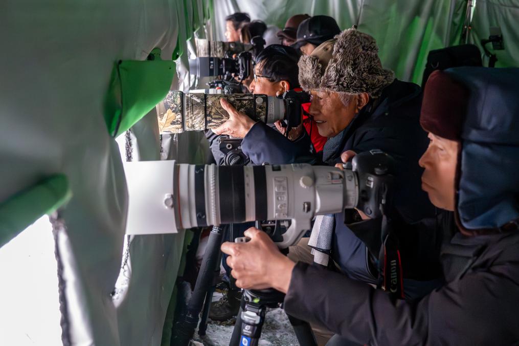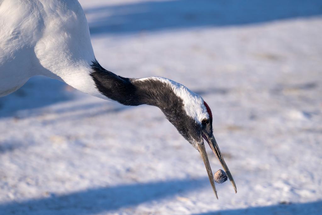冬日时节,黑龙江扎龙国家级自然保护区内白雪皑皑,丹顶鹤在寒风中觅食,上演一幅鹤舞冬日的纯净画面。