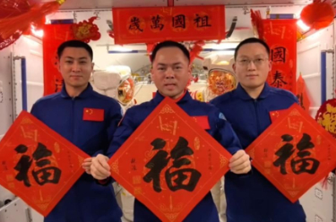 春节前夕,神舟二十一号航天员乘组在中国空间站向全国人民拜年(视频截图)。