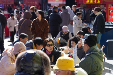 除夕当天,北京隆福寺新春市集热闹红火,市民游客购年货、品小吃,喜迎新春。