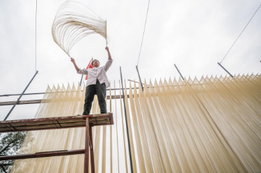 连日来,四川省德阳市中江县觉慧村村民抢抓晴好天气制作手工挂面,家家户户房前屋后晾晒的挂面如银丝垂落,非遗技艺在烟火气中活态传承。