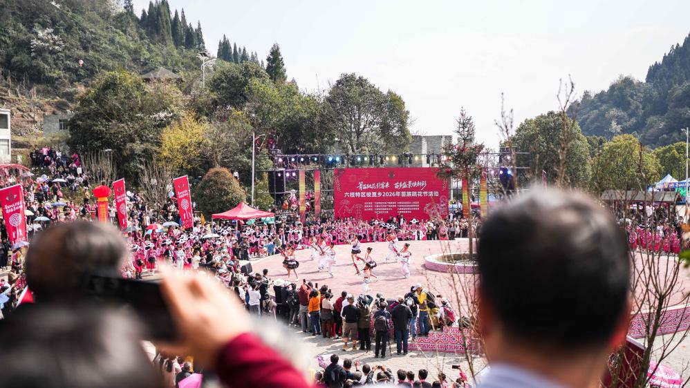 2月26日是农历正月初十,来自周边地区的苗族群众及国内外游客汇聚贵州省六盘水市六枝特区梭戛苗族彝族回族乡高兴村跳花场,欢度苗族跳花节。