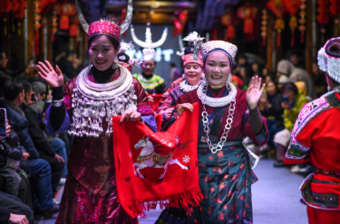 3月8日晚,一场“村T”民族服饰秀在贵州省凯里市苗侗风情园举行。来自黔东南苗族侗族自治州16个县市的绣娘、妇女代表走上T台,展示绚丽多彩的民族服饰之美。