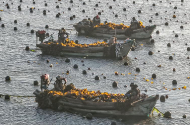 眼下,在我国海带主产区山东省荣成市,海洋牧场海带养殖区一派繁忙景象。养殖户对近岸养殖区达到成熟标准的海带分批收割,为后期收割的海带留出生长空间,以便提高海带产量和质量。