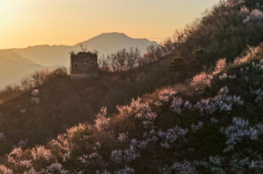 3月30日在河北省唐山市迁西县金厂峪镇拍摄的长城春景(无人机照片)。
