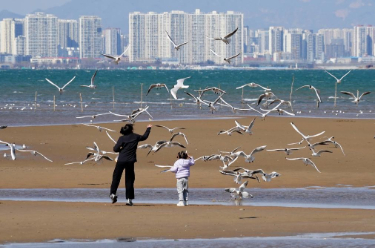近日,大批海鸥聚集于河北省秦皇岛市北戴河区沿海地区,在蓝天碧海间起舞。