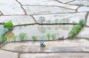 时下,广西南宁市邕宁区蒲庙镇田园色彩斑斓,与河流、村庄、山峦、道路相映成景,铺展出一幅生机勃勃的春日画卷。