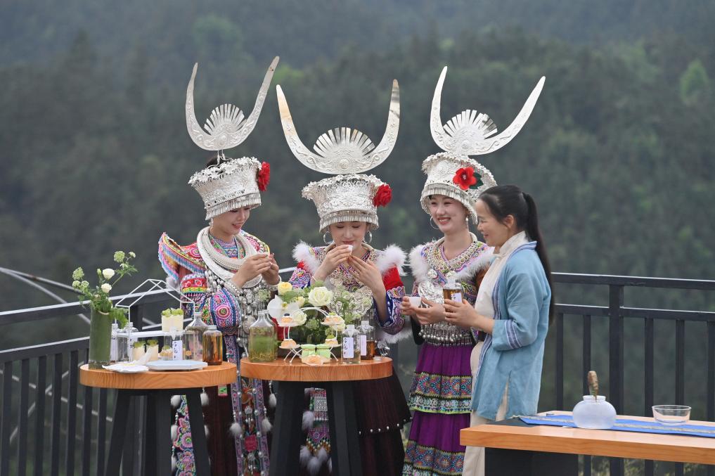 4月12日,广西柳州市融水苗族自治县举办粤桂协作大苗山踏青茶旅文化活动,茶商和游客欢聚苗乡,赏春色、品春茶、话产业发展。